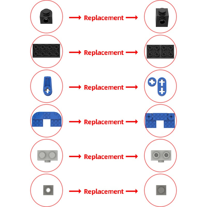 -- NO BOX and NO Sticker. NO minifigures, NO printed bricks, NO special bricks, they're replaced by other bricks.--