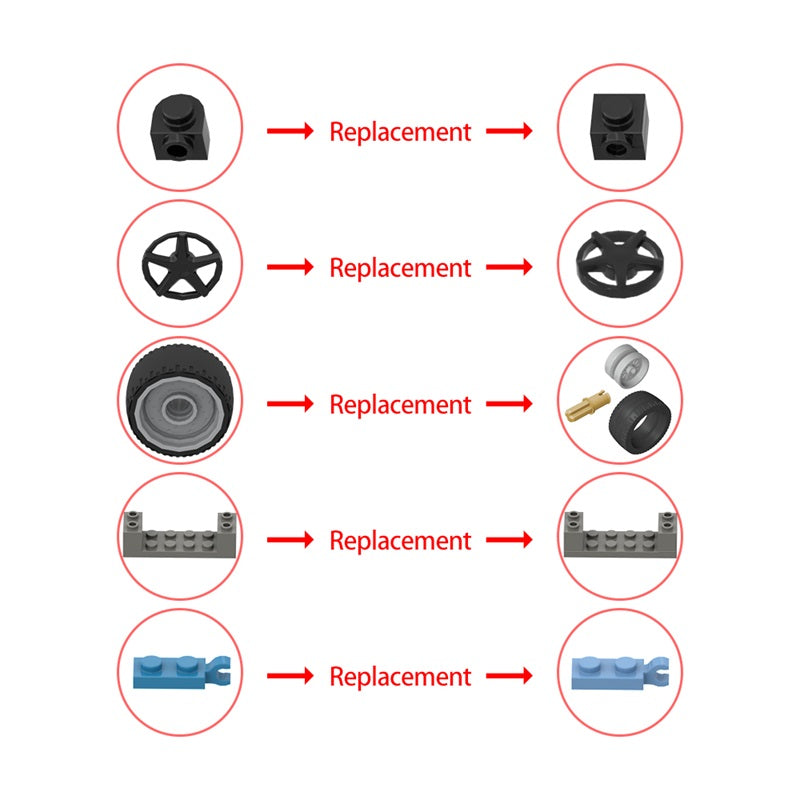 -- NO BOX and NO Sticker. NO minifigures, NO printed bricks, NO special bricks, they're replaced by other bricks.--